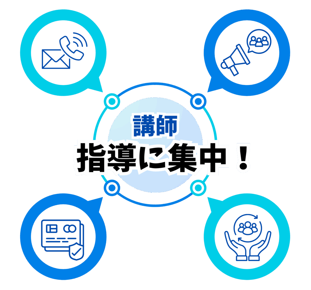 問い合わせや予約・振替対応を運営がサポートし、講師は指導に専念できます。